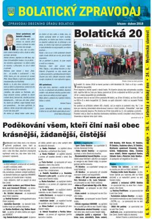 Z obsahu: Bolatická 20, BOlatická 30, Krajinářská studie, Den Země, obecní stavby a investice, zadlužení občanů, poděkování občanům a firmám a další zprávy spolků a organizací...