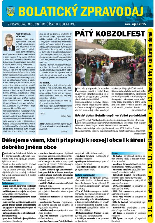Kobzolfest, Oslavy 765. let obce, rekonstrukce knihovny, ETM, Dny zdraví, dotazníkové šetření, obecní stavby a investice, poděkování občanům a firmám a další zprávy spolků a organizací...