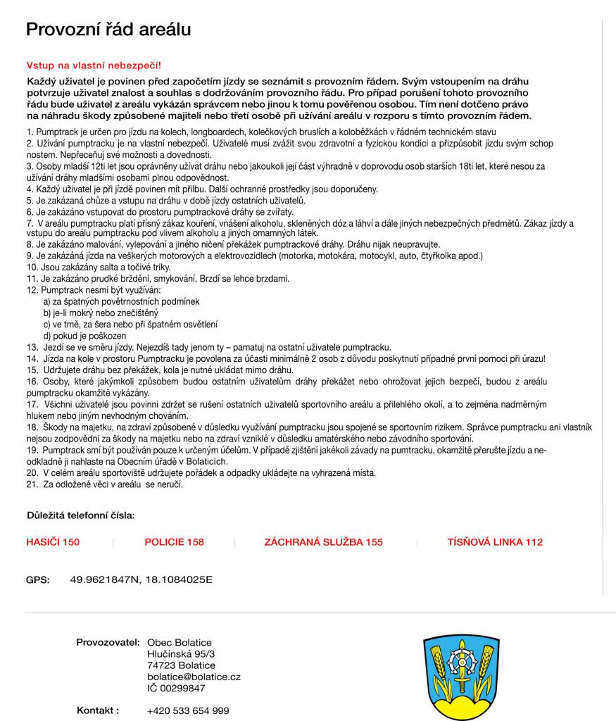 Prosíme, seznamte se s Provozním řádem tohoto hřiště, ať se předejde zbytečným zraněním a problémům.