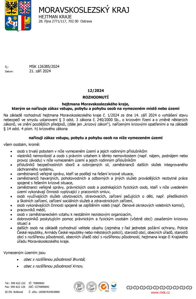 ROZHODNUTÍ hejtmana Moravskoslezského kraje