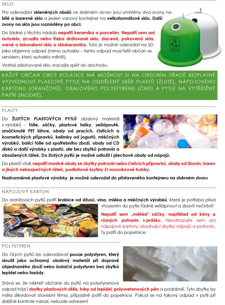 manuál ke třídění odpadů v Bolaticích, aktualizovaný v roce 2025