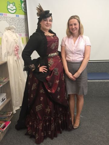 Zpátky do historie se vypravili návštěvníci knihovny prostřednictvím přednášky „Extrémy a paradoxy viktoriánské doby“. Tato dubnová přednáška byla velice atypická a atraktivní. Mladá přednášející Kateřina Mrázková alias Victorian Catherine osobně předvedla nejen typický oděv tohoto období, který je součástí jejího každodenního odívání, ale rovněž přivezla několik velice zajímavých ukázek reprezentujících viktoriánskou dobu. Posluchači si tak mohli prohlédnout noční košili, medailonky, čajové nádobí a dokonce ochutnat sušenky, které se ve staré Anglii jedly! Během přednášky zazněla spousta zajímavých informací ohledně běžného i intimního života tehdejších lidí. Odvážní si mohli na vlastní kůži vyzkoušet, jaké je nosit korzet. Konec přednášky okořenila ukázka svlékání dámy z honosné róby.