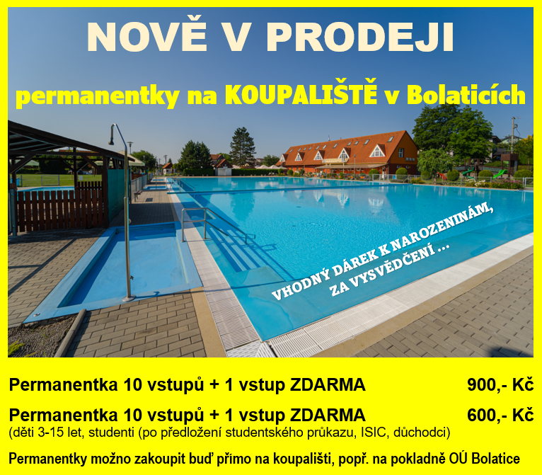 Součástí sportovně – rekreačního areálu v Bolaticích je veliký bazén (30 m x 25 m), bazén pro neplavce (15 m x 25 m) a dětské brouzdaliště (5 m x 10 m),